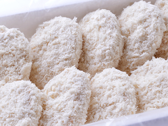冷凍コロッケの揚げ方は、ひとによってまちまちかと思いますが、うおかねコロッケは極力破裂しにくいよう、パン粉づけの際に卵水(つけ汁)を工夫してあります。冷凍状態のまま揚げて下さい。(解凍してしまいますと破裂しやすくなりますのでご注意ください)